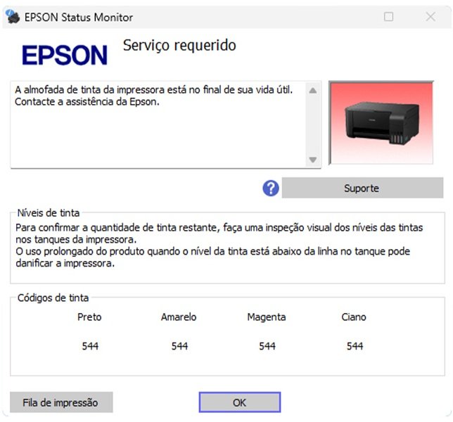 🖥️ Mensagem no computador: “A almofada de tinta da impressora está no final de sua vida útil”.